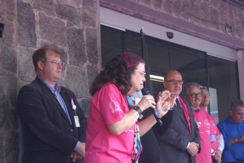 O diretor técnico do Grupo Hospitalar Conceição (GHC), José Fossari, cumprimentou especialmente os profissionais dos serviços do hospital implicados com a organização da Caminhada Pela Vida. Além disso, incentivou as mulheres em tratamento de câncer de mama a “enfrentar a doença com força e coragem”.