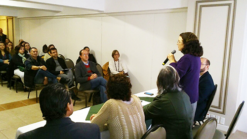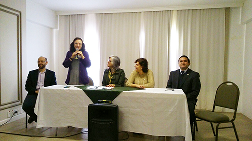 A diretora-superintendente do GHC, Sandra Fagundes, compôs a mesa de abertura do evento junto ao secretário da Saúde de Porto Alegre, Fernando Ritter, à chefe do Escritório do CICV no Rio de Janeiro, Ana Cristina Monteiro, e ao presidente da Fundação de Assistência Social e Cidadania (Fasc), Marcelo Soares.